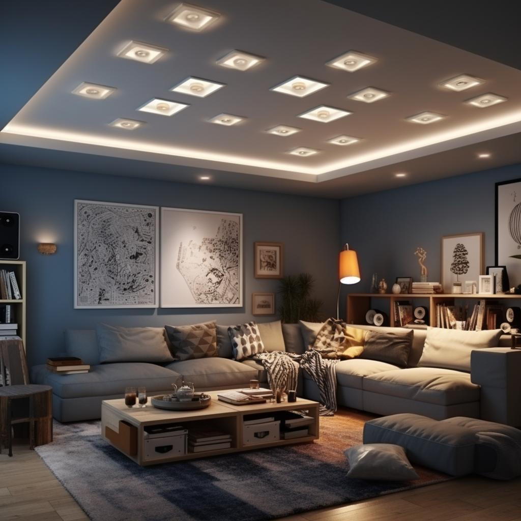 Потолочные светильники могут быть различных форм и размеров, что позволяет выбрать оптимальный вариант подходящий под стиль и размеры гостиной. Например, для просторных гостиных можно использовать большие потолочные светильники с несколькими лампами, а для небольших помещений подойдут компактные светильники с одной лампой.
