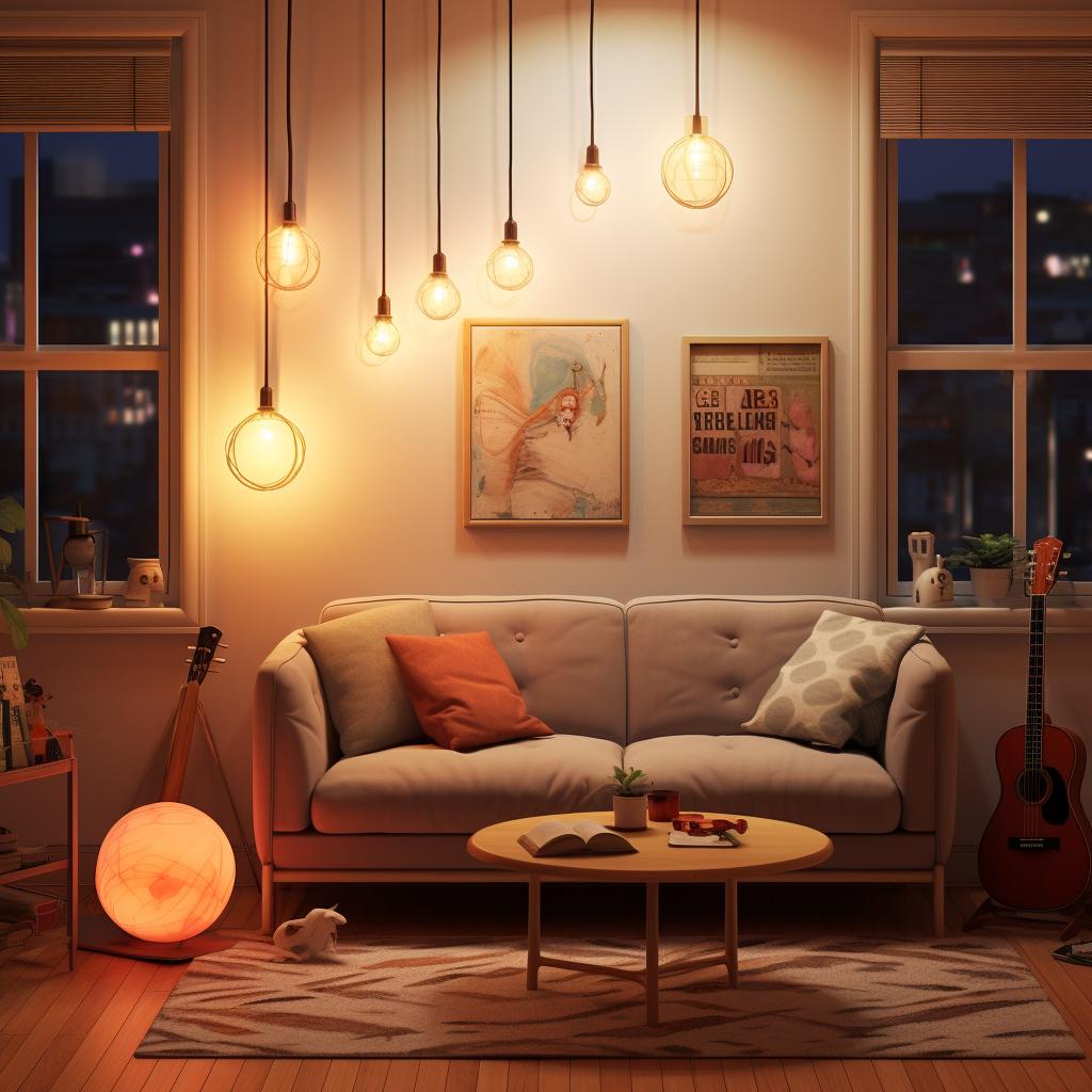 Пункт 1: Освещение комнаты с помощью подвесных светильников.