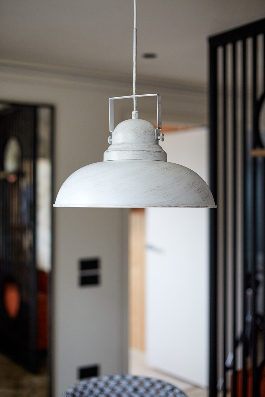 Для освещения обеденной зоны выбрали подвесной светильник в стиле лофт MARTIN A5213SP-1WG от Arte Lamp.