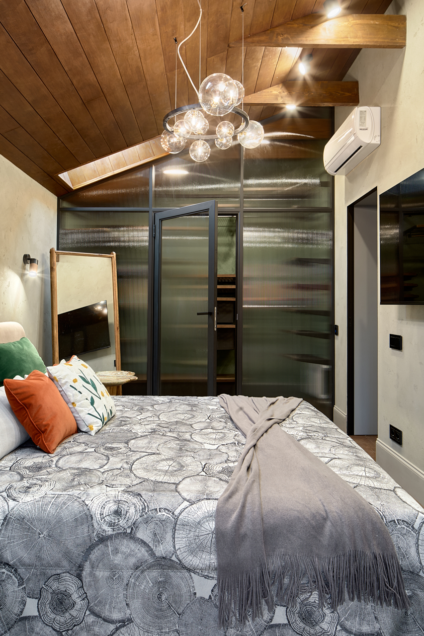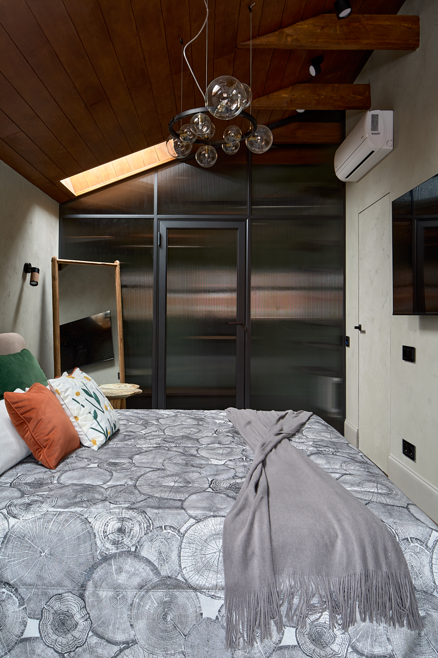 Авторская концепция, разработанная дизайнером Ириной Картун, превратила необжитое пространство на мансардном этаже, площадью 20 квадратных метров, в функциональную мастер-спальню для максимально комфортной жизни владельцев дома.