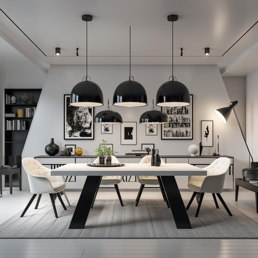 Черные светильники можно сочетать с другими элементами интерьера, такими как мебель, отделка и декор. Например, черные светильники могут комбинироваться с черными или белыми мебельными элементами для создания стильного и сбалансированного образа. Они также могут быть использованы в сочетании с яркими акцентами, чтобы добавить контраста и живости в помещение.