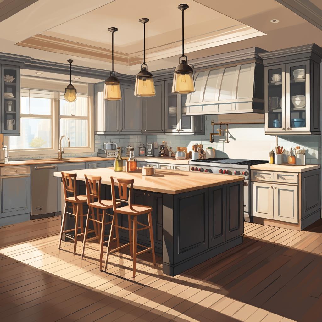 Давайте рассмотрим несколько практических примеров, как правильно разместить светильники на кухне. Предположим, у нас есть небольшая кухня с островом. В этом случае, мы можем установить несколько подвесных светильников над островом, чтобы создать акцентное освещение и придать кухне стильный вид. Также можно установить небольшие встраиваемые светильники в потолок над рабочими поверхностями и шкафами.