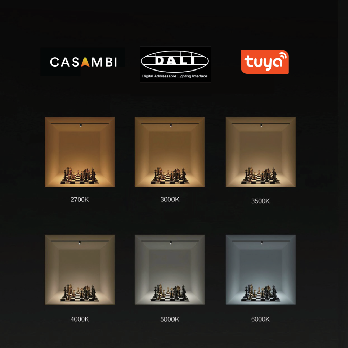 Узкая линия трека и компактные светильники обеспечивают освещение предметов, не привлекая внимание к самой системе. А управление на базе всех основных протоколов сделает использование комфортным и функциональным.
