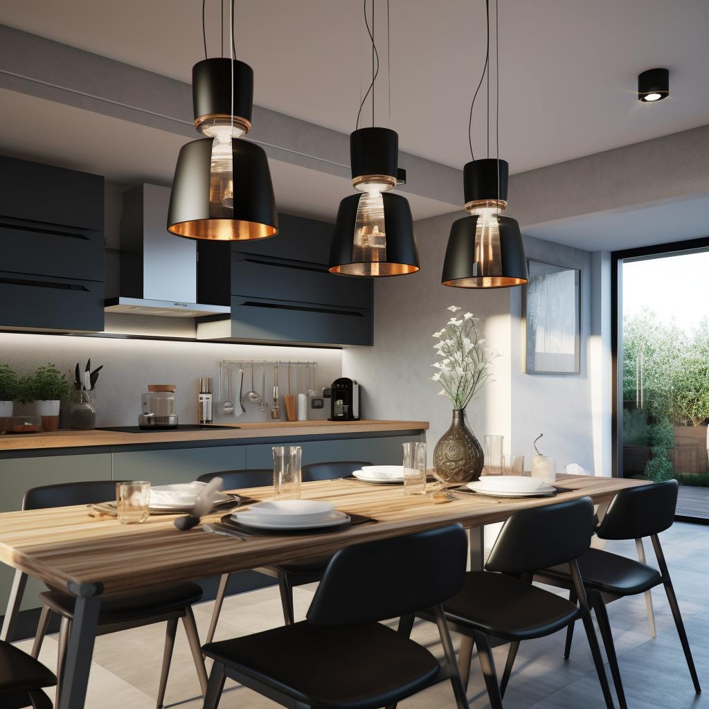 Также стоит упомянуть о важности правильного выбора размера и формы осветительных приборов на кухне. Например, для кухонных островков или барной стойки часто используются подвесные светильники, которые не только обеспечивают необходимое освещение, но также служат элементом декора.