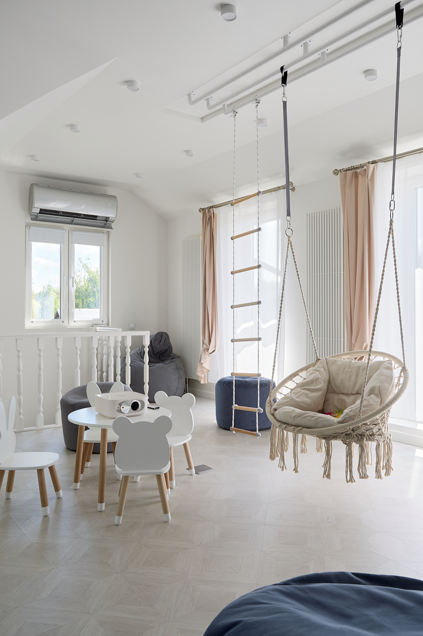 В основу концепции проекта легли мотивы переосмысления русского зодчества и живописи. Автор проекта - Анна Доброковская создала многофункциональное пространство с тремя основными зонами: спальная, рабочая и игровая. Дети могут как объединить три зоны, так и уединиться в одной из них.